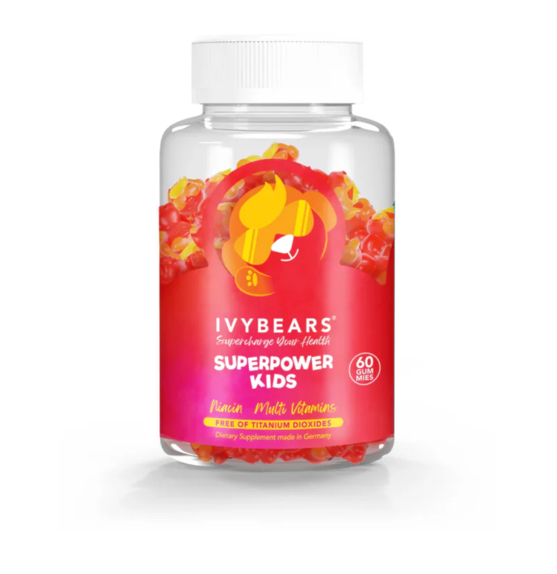 IVYBEARS® SUPERPOWER KIDS son multivitamínicos con un delicioso sabor a bayas que mejoran el bienestar de su hijo y están formulados para cubrir las carencias nutricionales y ayudar a los niños a satisfacer sus necesidades nutricionales diarias.