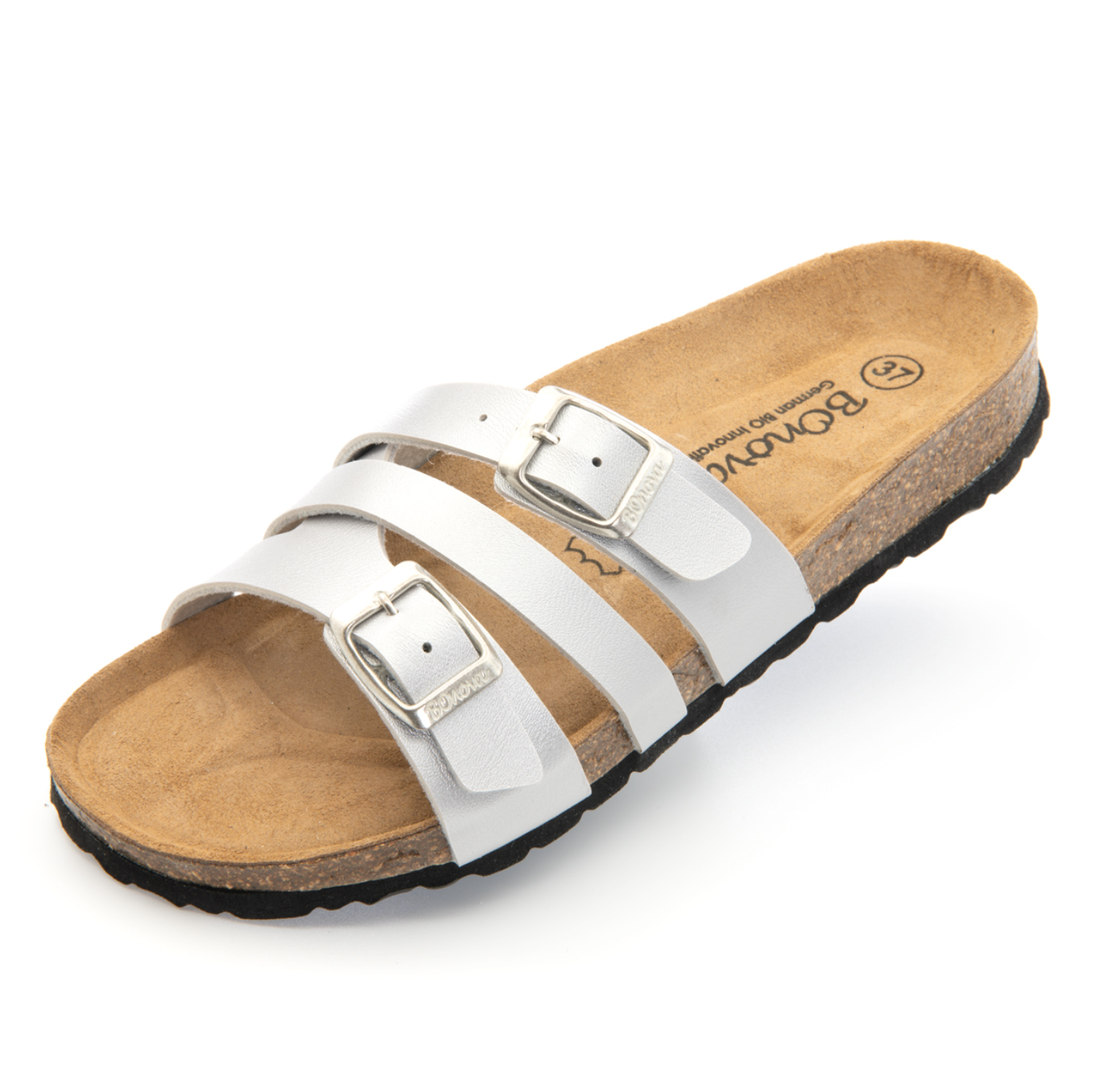 AJUSTE Las correas se pueden ajustar individualmente al pie mediante las hebillas. La hebilla está hecha de metal sin níquel.