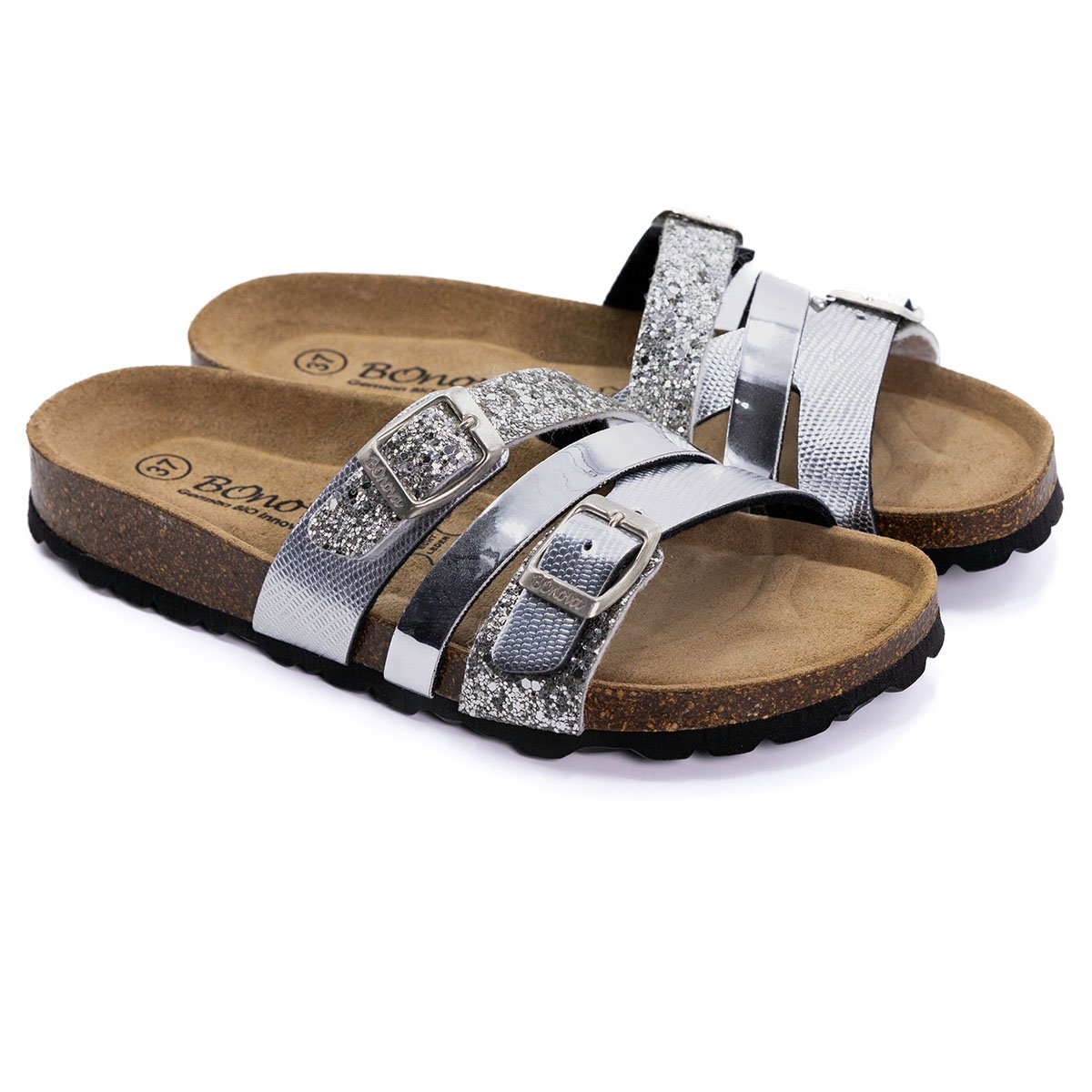 AJUSTE Las correas se pueden ajustar individualmente al pie mediante las hebillas. La hebilla está hecha de metal sin níquel.