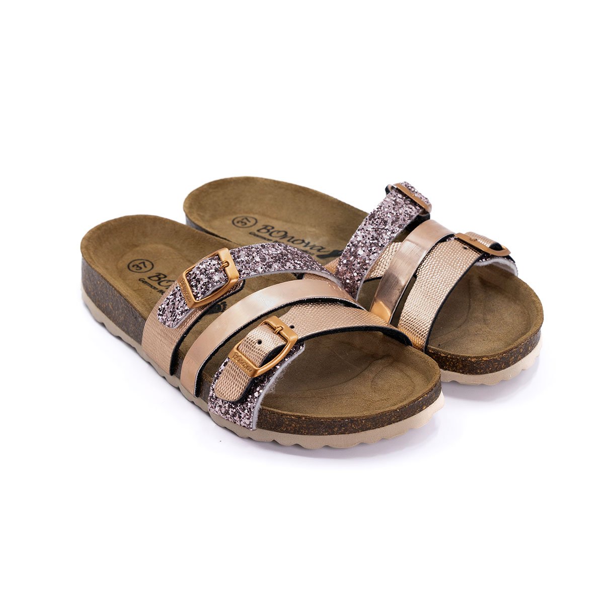 LIGERO Y CÓMODO PARA EL PIE Nuestro material superior especialmente desarrollado, BOnoflor, es especialmente respetuoso con la piel y, sobre todo, fácil de cuidar. Este modelo brilla en colores diferentes. El efecto espejo con detalles de brillo atrae especialmente las miradas en los colores oro rosa, plata y negro.